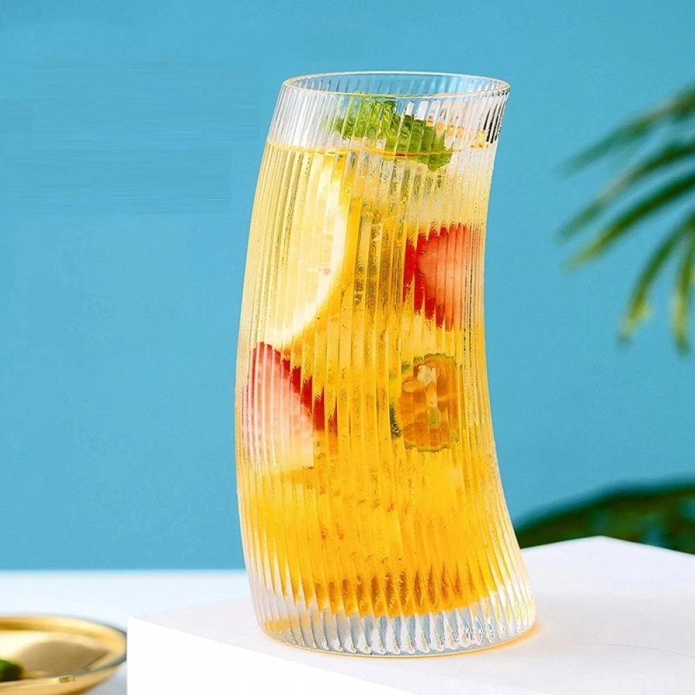 كوب زجاجي شفاف على شكل شراع هو تصميم مبتكر وأنيق لمجموعة متنوعة من المشروبات.